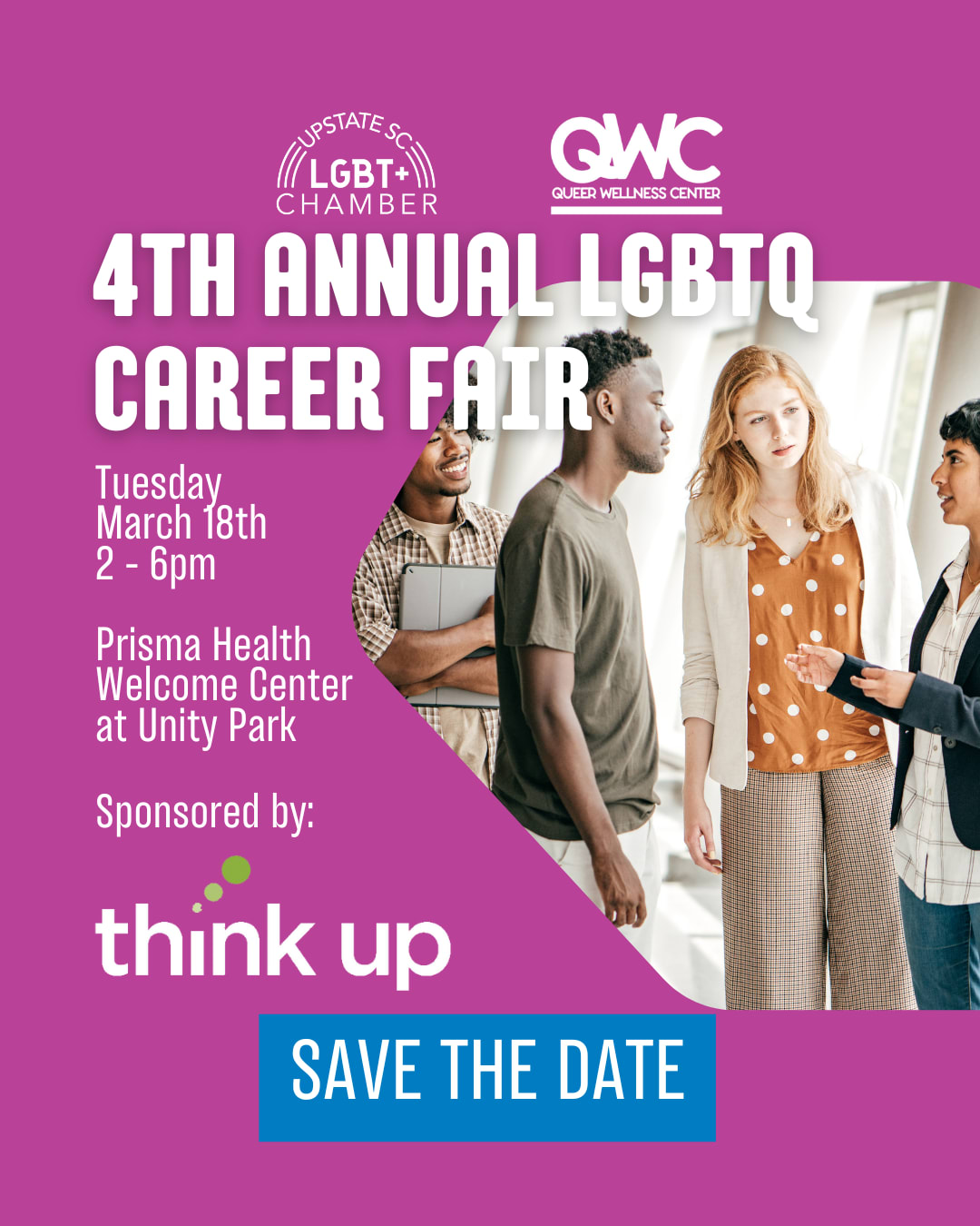 According to the Center for American Progress, HALF of LGBTQ+ adults reported facing some kind of employment discrimination in 2022. Additionally, UCLA research indicates that pre-pandemic LGBT people living in South Carolina were over double as likely to be unemployed as their non-LGBT peers. Given these realities, the Upstate LGBT+ Chamber is excited present, the Fifth Annual Career Fair for LGBTQ professionals and allies.