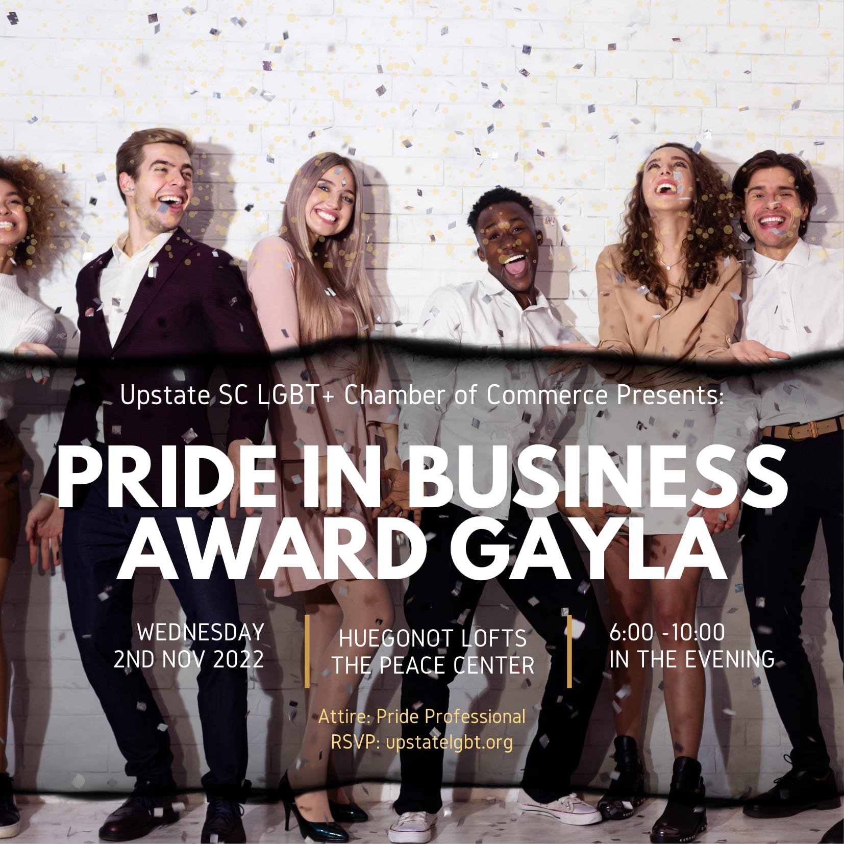 Join us to celebrate, honor, and dance with the leading LGBTQ+ owned businesses, professionals, and strongest community allies at the inaugural Upstate SC LGBT+ Chamber of Commerce Business Awards Gala!